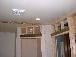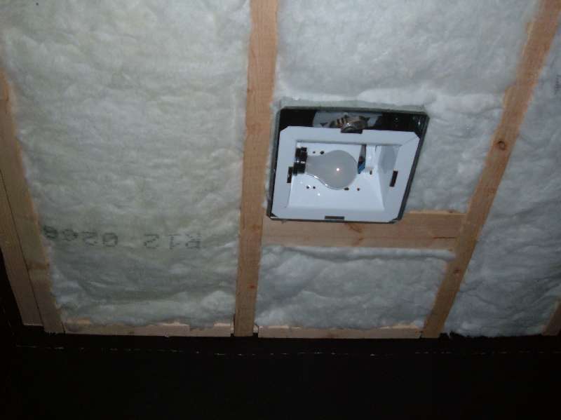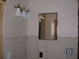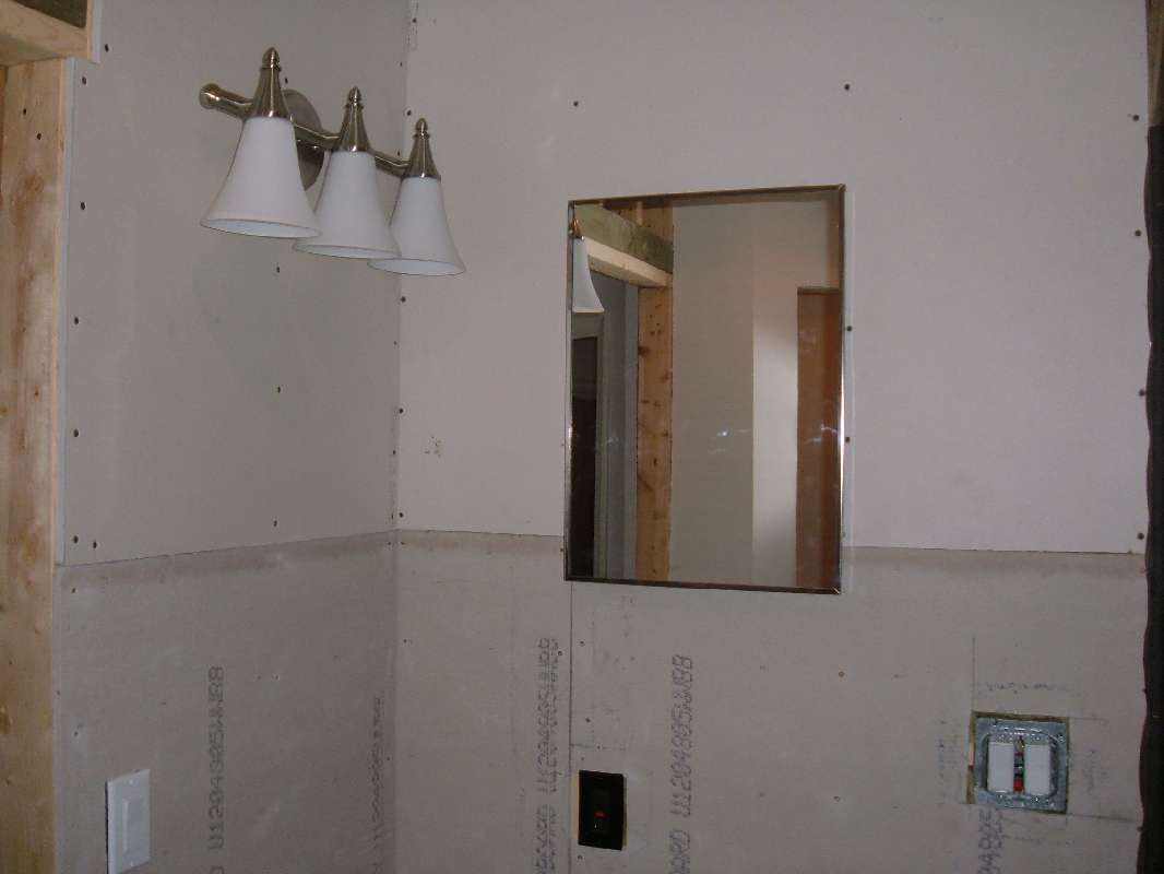 So... We installed new plugs, switches, lights and fans. We went a little overkill here using three fans (tub, shower, water-closet) recessed lights and a couple of GFI outlets. We are hoping for an executive bathroom.