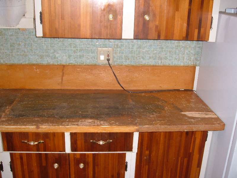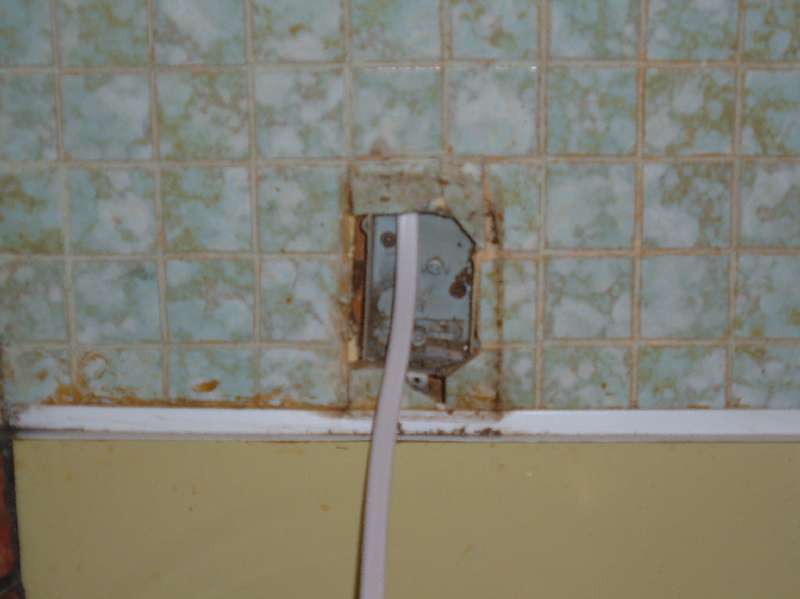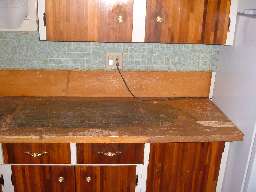 The kitchen wasn't nearly as bad. It's biggest proplem was that it was built before grounds and GFI's. Fortunately the wiring for the receptacles was easily replaced bringing it up to code. The appliences, although non-functional, were at least wired correctly.