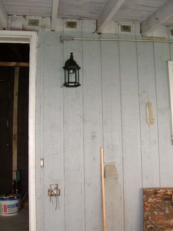 In the breezeway (mudroom) the electrical was a combination of 'old' and 'older'. Ugh! It was also lagging in functionality. In addition, over the years, it has been subject to a lot of water damage compromising it's integrity.