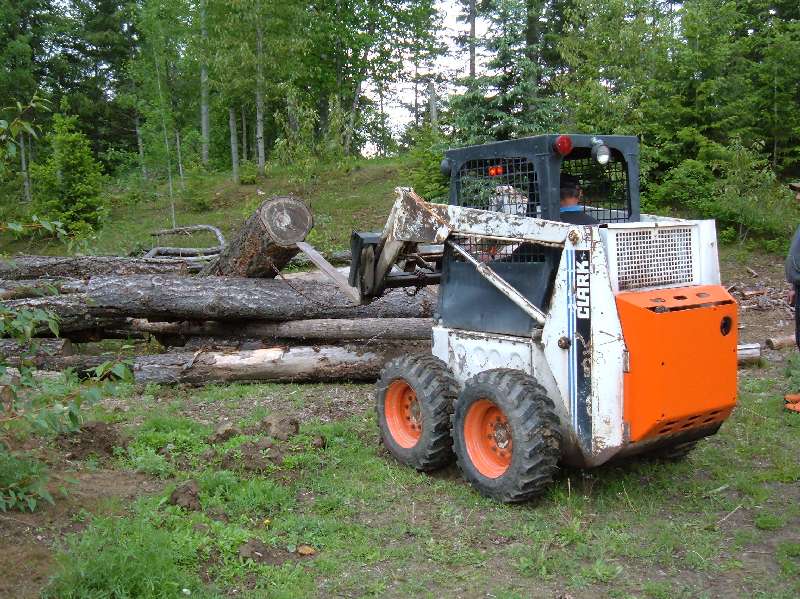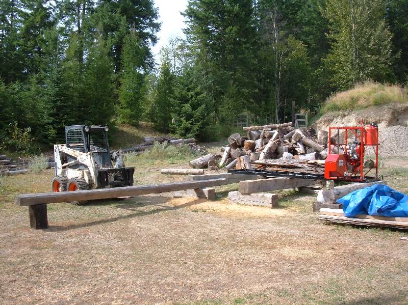 Now in order for this to work you need something to move logs from a pile to the mill. Fortunately, there is a small skid-steer Bobcat type machine. Of course there are also Hoe's, Excavator's, loaders... But they are so big for these small logs.
