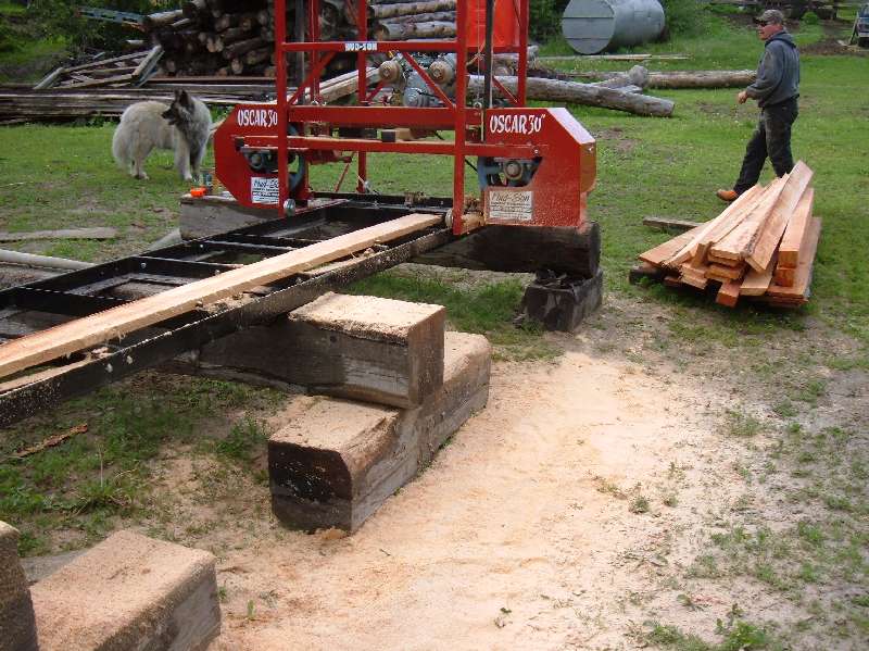 When we purchased the mill we set it up immediately (who wouldn't). We moved around some junk beams laying around in the yard. Did some crude leveling. And behold Lumber.