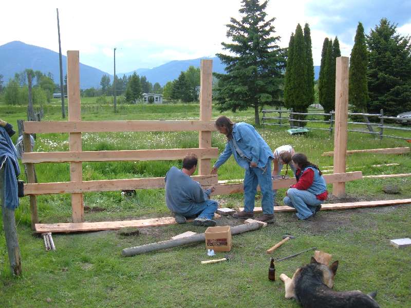 Fortunately I had the saw-mill to cut the posts and rails. Since I got the logs for free (two ten-foot medium-size Fir logs) my only cost was the hinges, chain and latches and my time to cut the lumber.