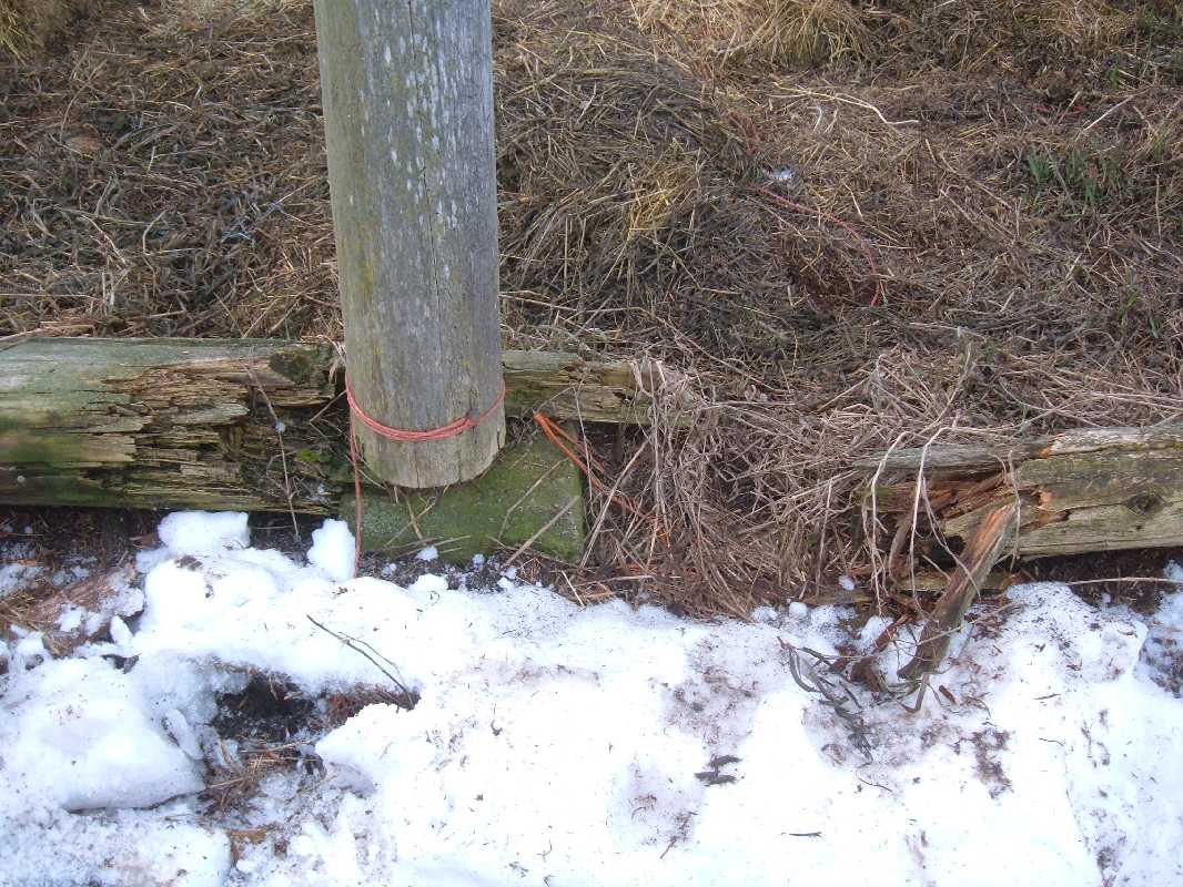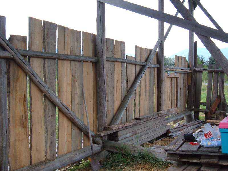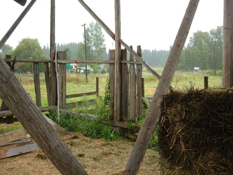 The hay shed here is in real serious disrepair. This is yet another case where Irene has dropped the ball. There would have been plenty of money to have replaced the siding and resources to replace the rotted plate but Irene seemed to feel that as long as she could keep the horses out, the shed itself was unimportant. It didn't seem to matter either that the hay was getting wet and spoiled in the rain. Again our (Shauna and I) investment is going to ruin.
