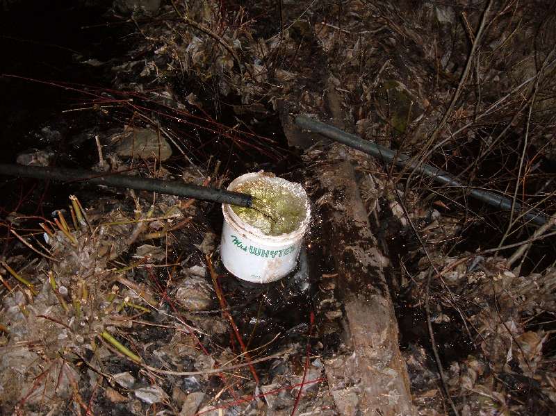 The chicken house is at the back of the property here. The nearest water source is an old, broken, water pipe behind the shed. It doesn't look to bad because the running water staves off the cold. But believe me. It's cold. I trudged through two feet of snow to get here. And I still have to bring the water back to the chickens.